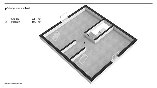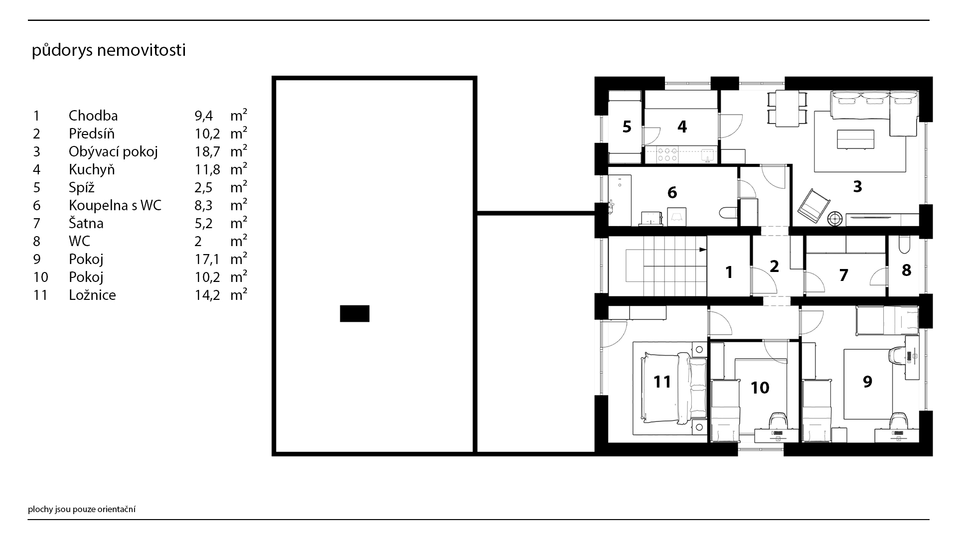 V podkroví se nachází byt 1+kk a další dva samostatné pokoje, což otevírá další možnosti využití.