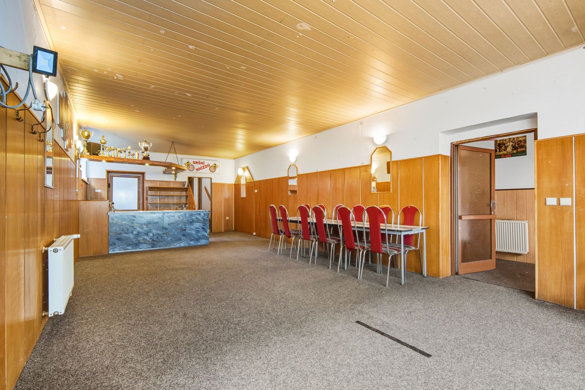 V přízemí domu se nachází plně funkční hospoda s kuchyní a zázemím, na kterou přímo navazuje venkovní posezení, ideální pro letní provoz. Součástí přízemí je také bytová jednotka 1+1, vhodná k bydlení či pronájmu.